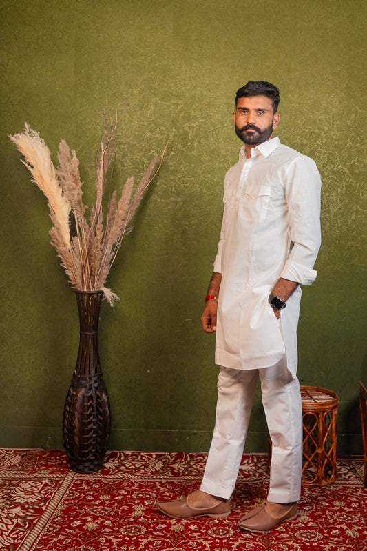 Cotton Comfortable Solid Kurta with Traditional Dhoti Set