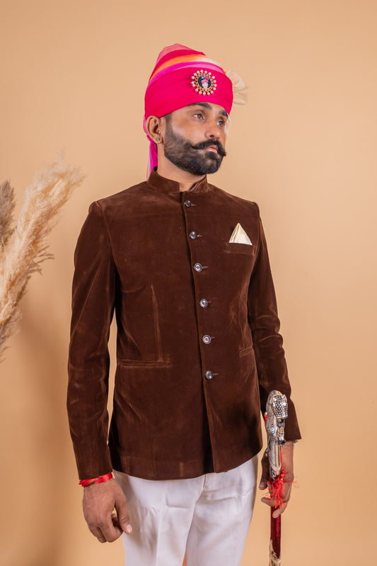 Velvet Brown Color Jodhpuri Bandgala with Trouser